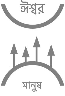 ঈশ্বর এবং আমাদের মধ্যে একটি দূরত্ব, একটি ফাঁকা জায়গা রয়েছে। এই তীরচিহ্নগুলো দেখায় যে ঈশ্বরের সান্নিধ্যে পৌঁছানোর জন্য আমাদের চেষ্টাসমূহ... যেগুলো অন্যদের জন্য ভাল কিছু করা, বৈবাহিত রীতি-নীতি পালন, ভাল মানুষ হয়ে ওঠার চেষ্টা করা, ইত্যাদি। কিন্তু এখানে সমস্যাটি হল এই ভাল কাজগুলোর একটিও আসলে আমাদের পাপ মুছে ফেলে না বা পাপ দূর করে না।